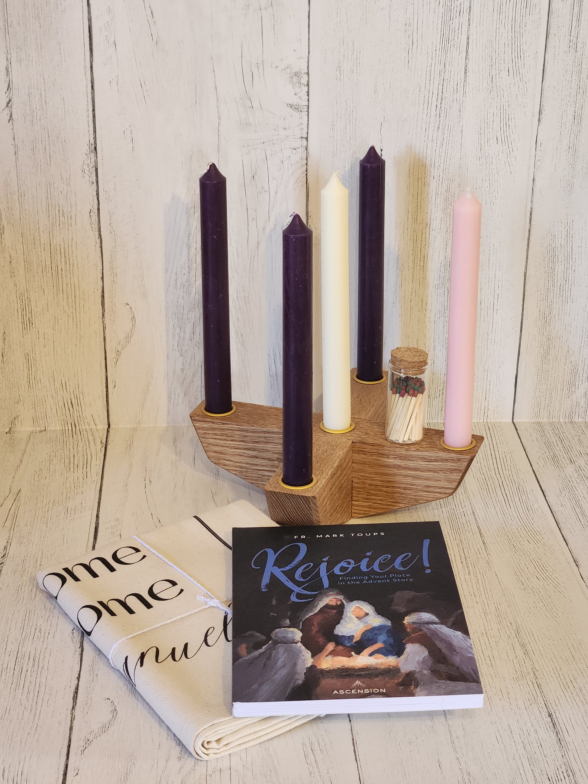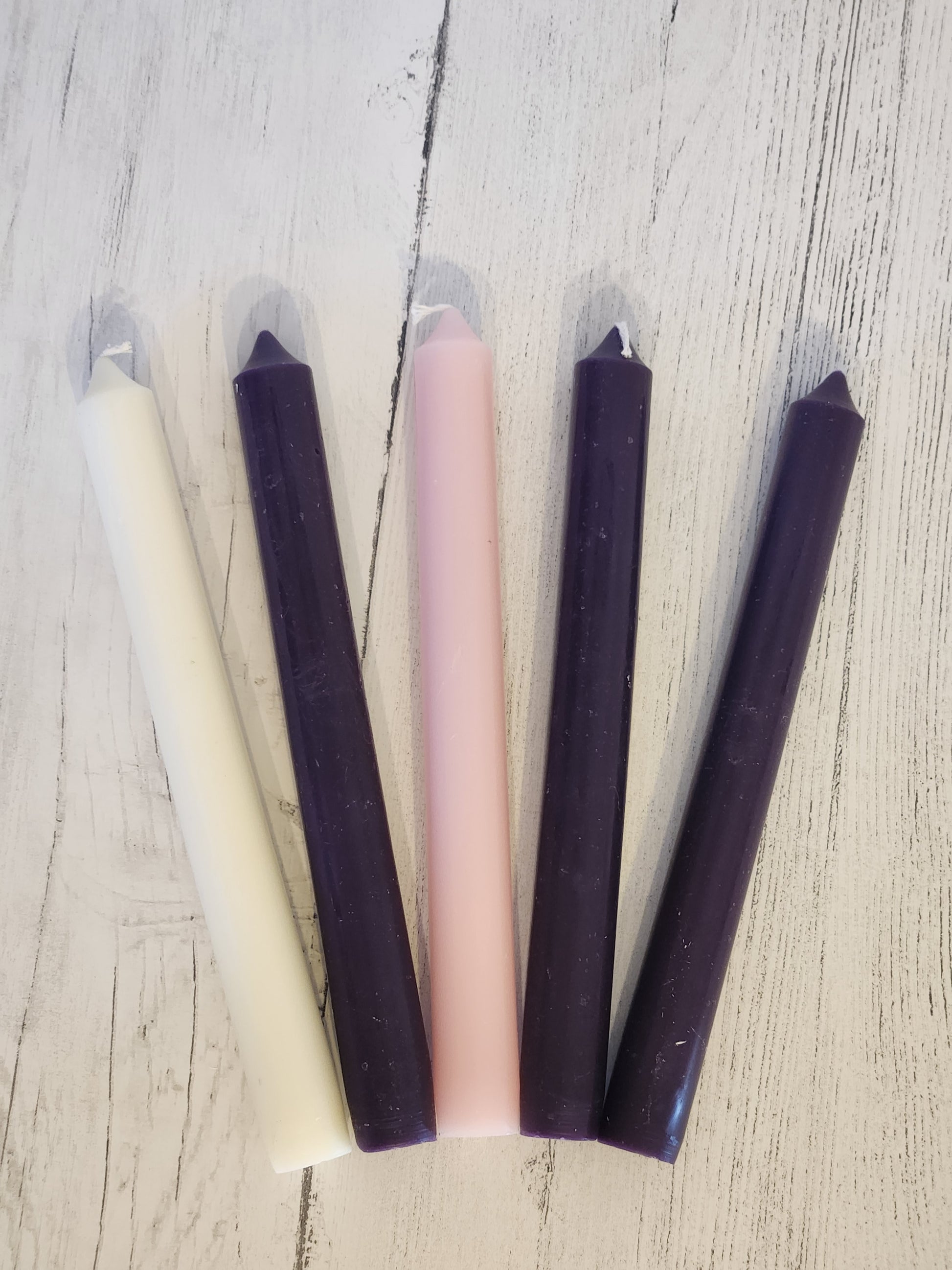 - Candles: These candles are the perfect set up for our advent theme this month. We sourced a circumference that would make a tight fit, complementing your new advent wreath candle holder. $10